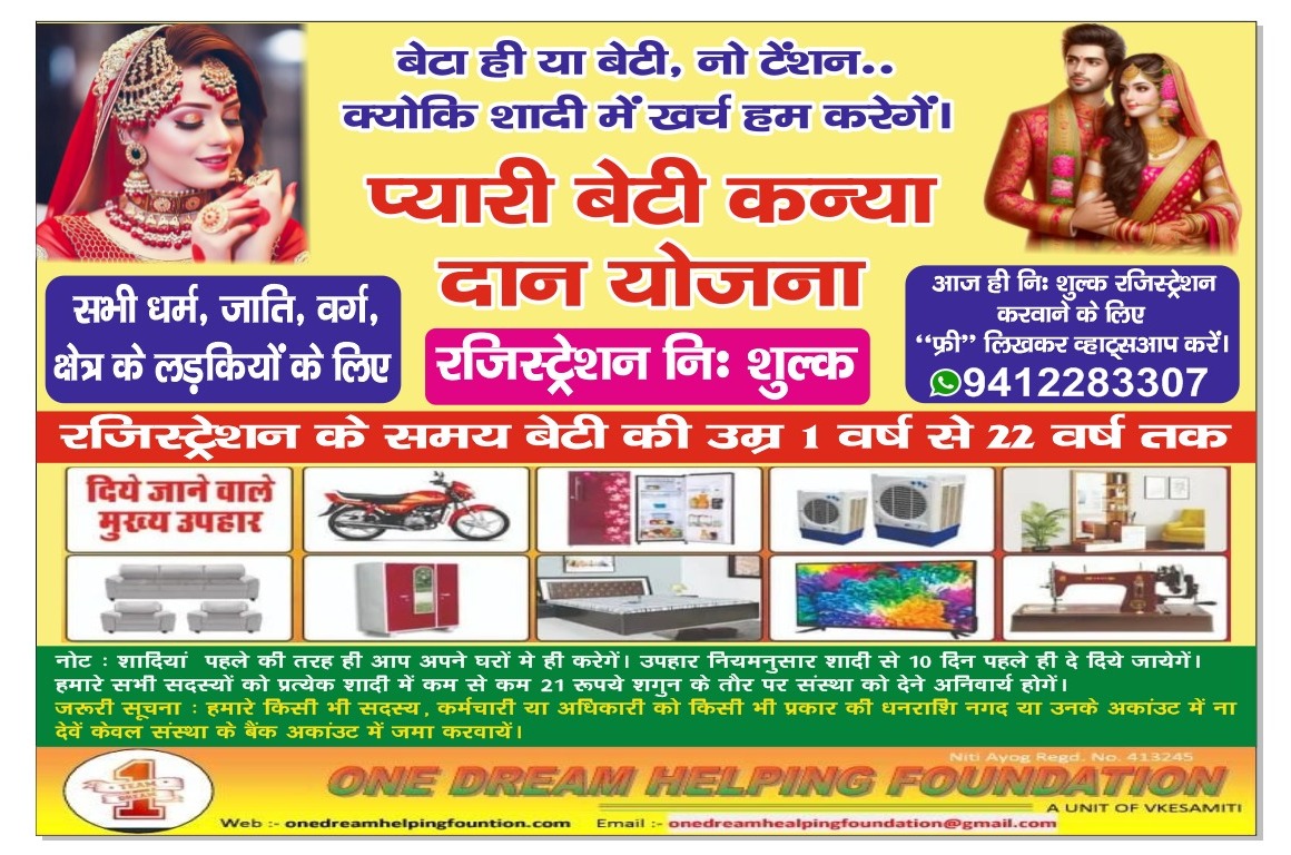 प्यारी बेटी कन्यादान योजना के लिए अभी दान करे